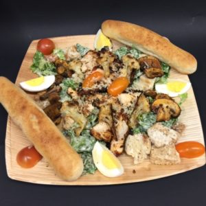 $9.00juicy grilled chicken breast over crisp romaine tossed in our Caesar dressing. Topped with red onions, croutons and shaved parmesan